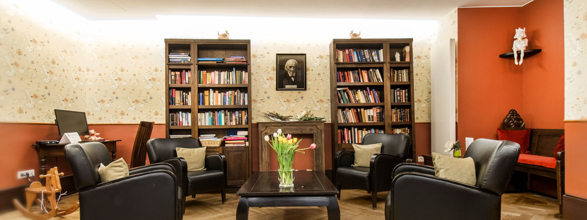 Genießen Sie hier zum Knistern unseres (zugegebener Maße unechten) Kamin ein gutes, spannendes oder fesselndes Buch aus unserem "offenen Büchregal". Das Prinzip ist ganz einfach. Jeder darf sich ein Buch gratis herausnehmen und darin schmöckern. Im Tausch stellt man ein bereits gelesenes Buch zurück und macht damit dem nächsten Gast eine Freude. Auf diese Weise finden Sie bei uns eine Vielzahl an Büchern aus den unterschiedlichsten Themengebieten, sowie auch einige englische bzw. anderssprachige Bücher.