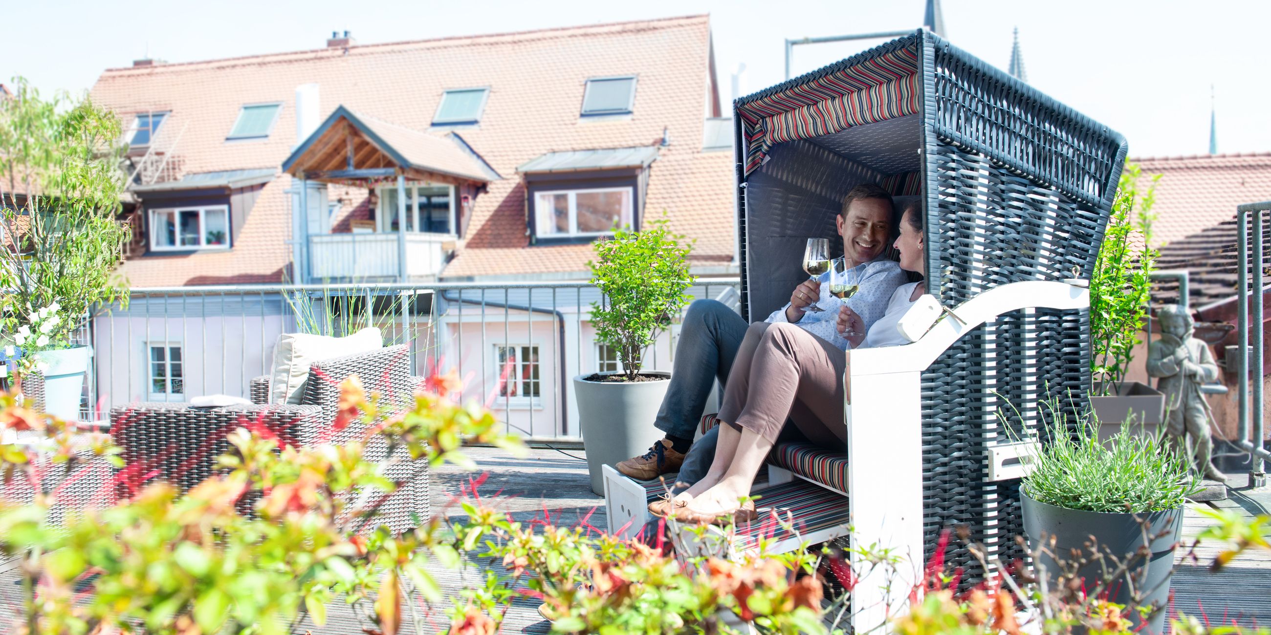 Exklusiv für unsere Hotelgäste haben wir unsere schönen Altstadtterrassen auf der 3. und 4. Etage geöffnet. Genießen im Sommer das Flair der Konstanzer mittelalterlichen Altstadt oder lauschen Sie dem entspannten Plätschern der Wasserwand.