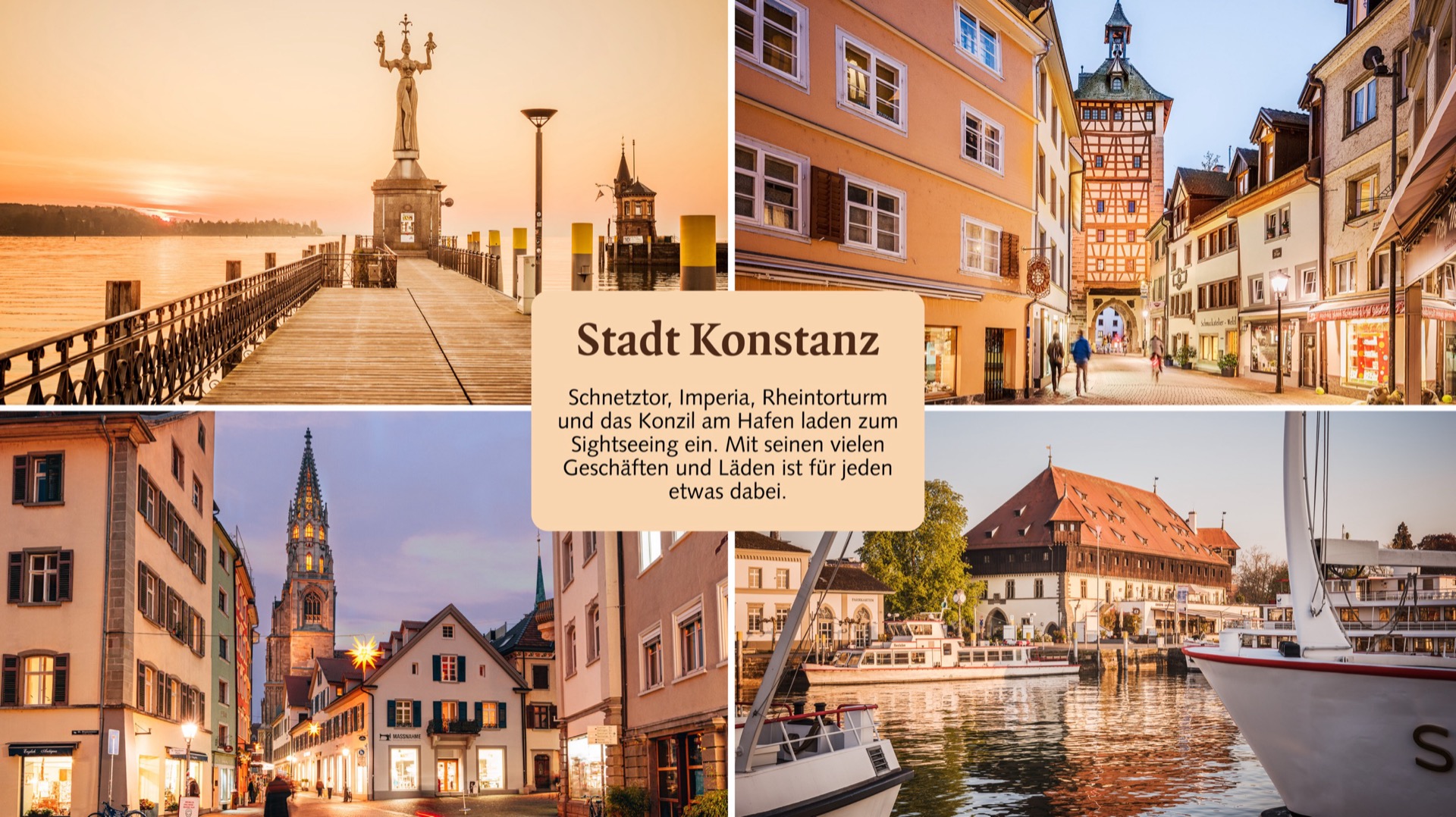 Durch die zentrale Lage im Herzen der Stadt sind die Konstanzer Sehenswürdigkeiten, der Hafen, die Seepromenade, der Bahnhof und eine Vielzahl von kulturellen Einrichtungen jederzeit und ganz bequem in wenigen Gehminuten zu erreichen.