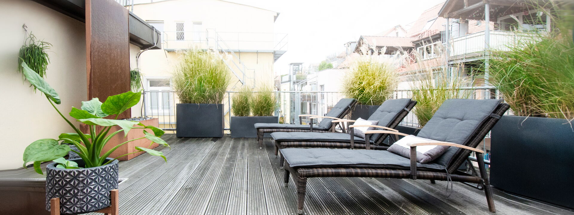 Exklusiv für unsere Hotelgäste haben wir unsere schönen Altstadtterrassen auf der 3. und 4. Etage geöffnet. Genießen im Sommer das Flair der Konstanzer mittelalterlichen Altstadt oder lauschen Sie dem entspannten Plätschern der Wasserwand.